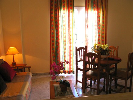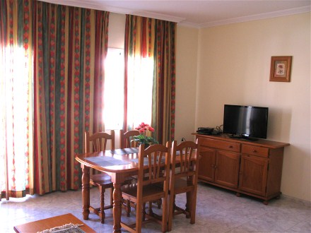 Die Wohnzimmer sind ansprechend mit Pinienmöbeln im spanischen Stil eingerichtet. Eine Klima Anlage mit Kühl- und Heizfunktion sorgt im Winter und im Sommer für angenehme Temperierung. |