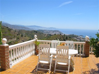 Vor dem Haus gibt es diese sonnige Terrasse, ebenfalls mit Blick auf das Meer und den Ort Almuñécar. |