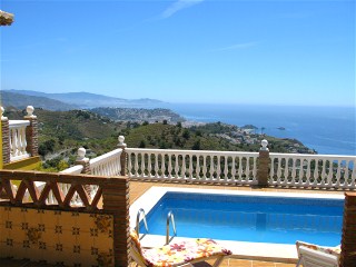 Auf der Pool Terrasse liegt Ihnen der Ort Almuñécar zu Füßen. Sie überschauen die Bucht von Cotobro, Playa San Cristobal, los Pinos bis zur Küste von Salobreña und Torrenueva. Im Winter und Frühjahr sehen Sie auch die schneebeckten Gipfel der Sierra Nevada. |