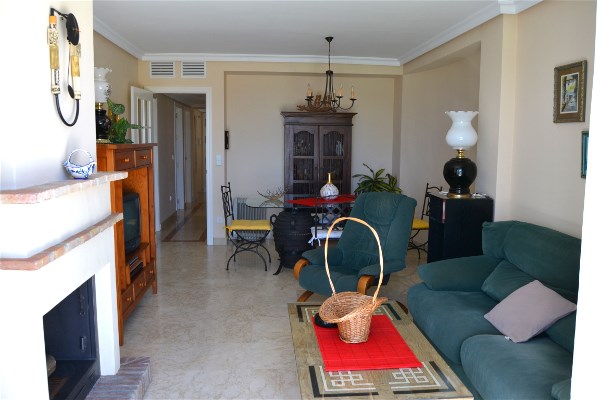 Auch vom sehr schön eingerichteten Wohnzimmer, mit Marmorboden, haben Sie einen fantastischen Meerblick. Das Gebäude verfügt über einen Fahrstuhl, der auch direkt in die Tiefgarage führt.